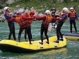 ボートに乗り込んだ仲間や元気なガイドと色んな遊びや激しい瀬をクリアして大興奮!