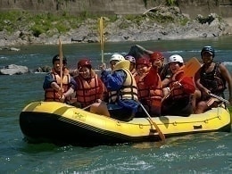 ボートに乗り込んだ仲間や元気なガイドと色んな遊びや激しい瀬をクリアして大興奮!